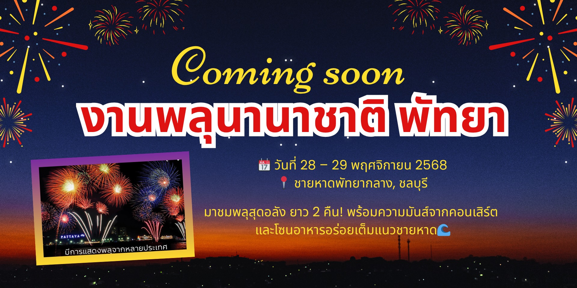 งานพลุนานาชาติ พัทยา 2025 ถือเป็นหนึ่งในกิจกรรมสุดยิ่งใหญ่ประจำปี ที่นักท่องเที่ยวทั้งชาวไทยและชาวต่างชาติรอคอย โดยปีนี้กลับมาในรูปแบบจัดเต็ม 2 คืนต่อเนื่อง กับการแสดงพลุสุดอลังการจากทีมระดับโลก ที่จะเนรมิตท้องฟ้าพัทยายามค่ำคืนให้สว่างไสวไปด้วยแสงสีสุดงดงาม